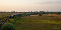 ET22-801 z pociągiem TME 144042 relacji Warszawa Okęcie GT - Rybnik Towarowy mija dawny posterunek odstępowy Kamion na szlaku Puszcza Mariańska - Skierniewice.