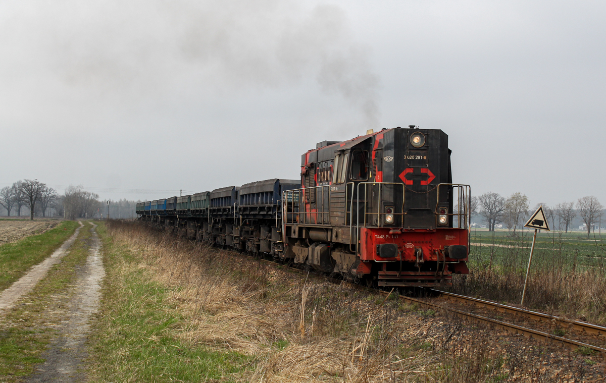 Czarny koziołek prowadzi skład radwanów kierując się w stronę kopalni "Budryk".