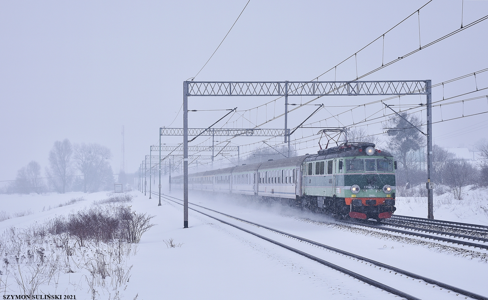 Piękna EP07-174 w historycznym malowaniu należąca do Północnego Zakładu PKP Intercity w Gdyni przemierza szlak Pszczółki - Pruszcz Gdański jadąc torem numer 1 linii 9 z pociągiem TLK 18115 Pobrzeże relacji Łódź Fabryczna - Kołobrzeg, za chwile minie przystanek osobowy Różyny.