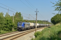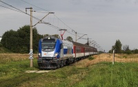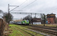 Lokomotywa E6ACTadb-035 w służbie PKP Cargo z pociągiem intermodalnym relacji Rzepin - Małaszewicze Centralne.