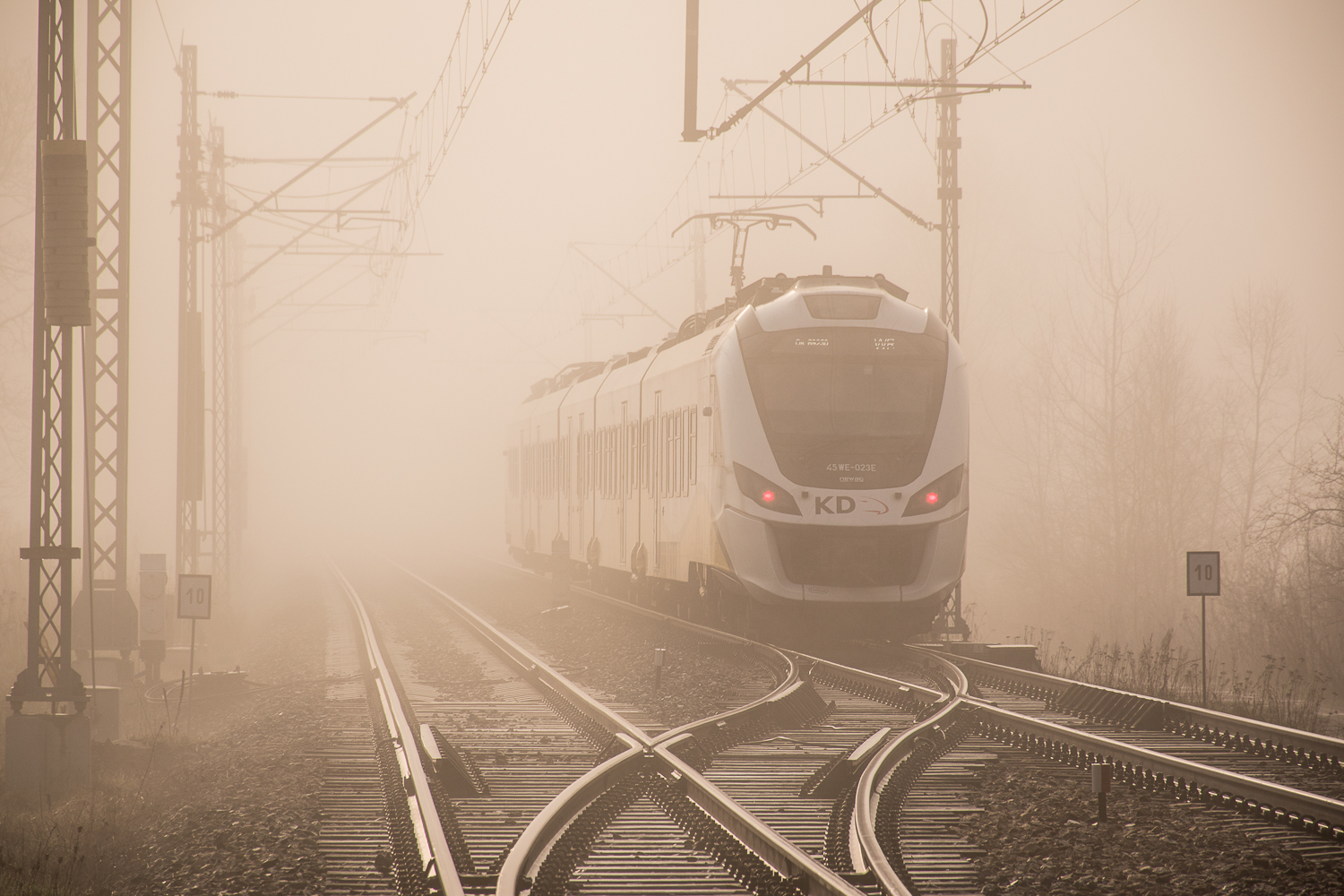 45we-023 z pociągiem KD ze Szklarskiej Poręby Górnej do Wrocławia Głównego opuszcza o poranku stację w Wojanowie. Warunki były wspaniałe. Deszcz, który padał dzień wcześniej spowodował powstanie gęstej mgły, a resztę roboty zrobiło słońce.