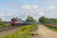 Do stacji towarowej w Braniewie zbliża się pociąg towarowy ze stacji Мамоново (Obwód Kaliningradzki).