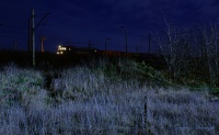 Zwyczajny byczek z węglarkami w ciekawym malowaniu jedzie po przeciwnym do kierunku torze, w Szczypiornie prowadzono prace na torowisku (firma PRK z Poznania),mijając czynny jeszcze posterunek dróżnika w Noskowie (13.06.2011)