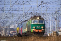 ET22-836 ze składem kontenerów jako TDE 452000/1 rel. Sławków Euroterminal - Gdańsk Port Północny przemierza szlak Pszczółki - Pruszcz Gdański zaraz minie p.o Różyny.