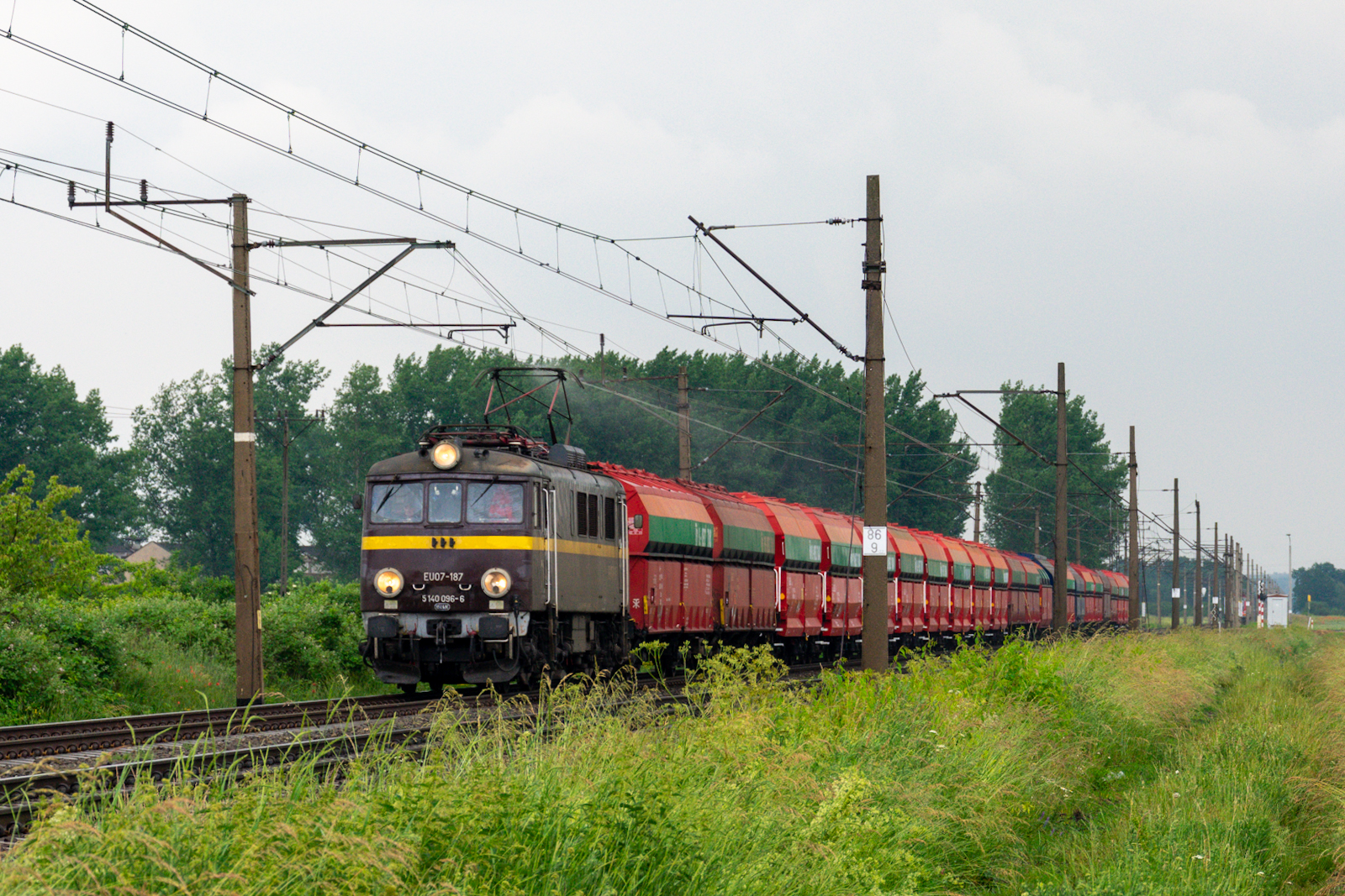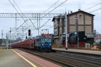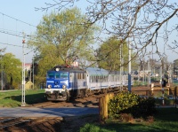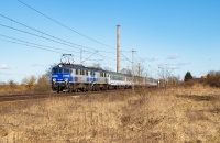 Można by rzec że niemal klasyczny skład gdyby nie powyższa lokomotywa i 2 niebieskie kryte talboty.