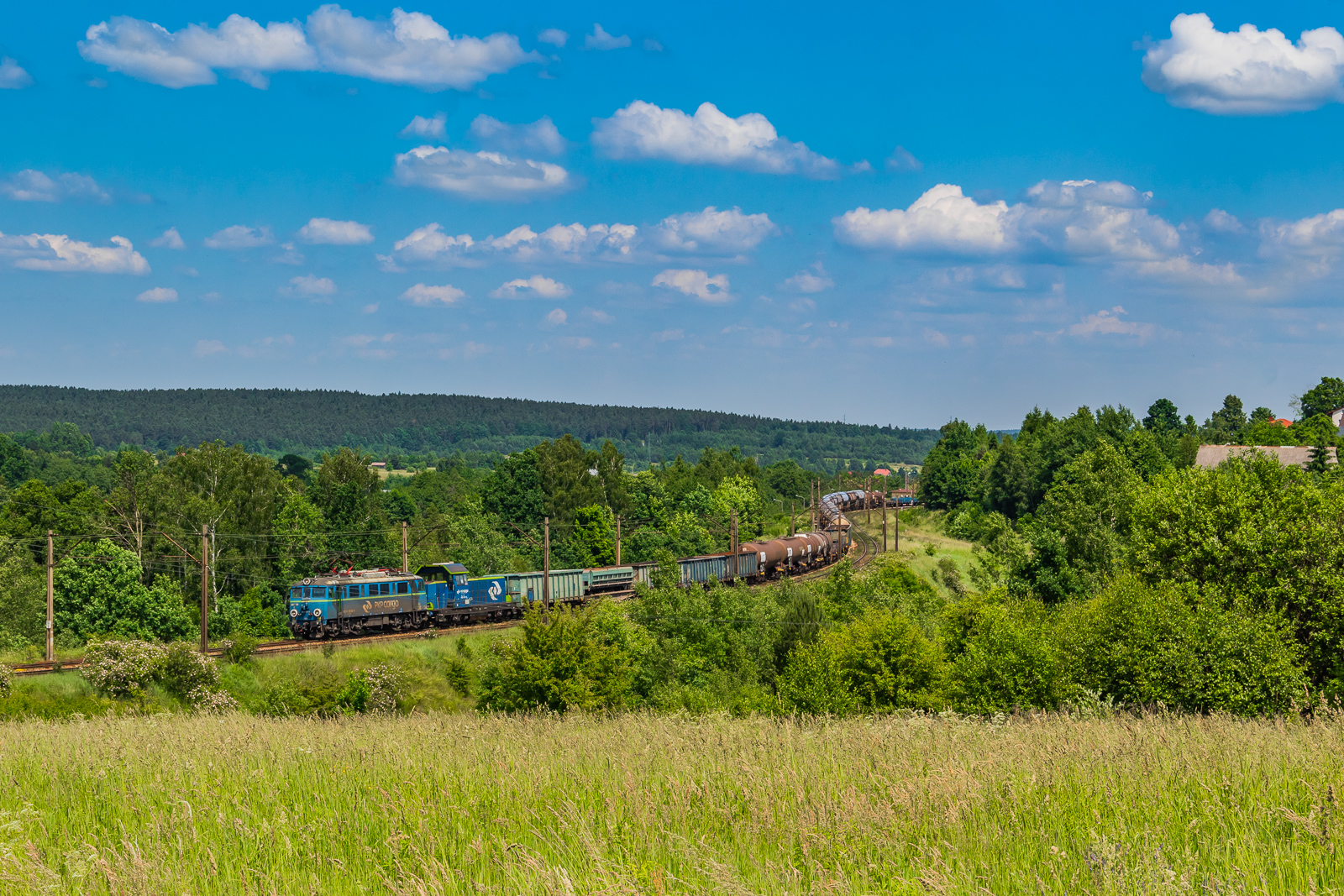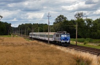 EU07-136 wraz z niezidentyfikowanym z numeru Kioskiem prowadzą szlakiem Łączna - Zagnańsk długiego mieszańca ze Skarżyska - Kamiennej. Taki skład (no, nie licząc 6Dg...) bardzo cieszy oko w obliczu wymierania zarówno klasycznych siódemek jak i pociągów wielogrupowych :).