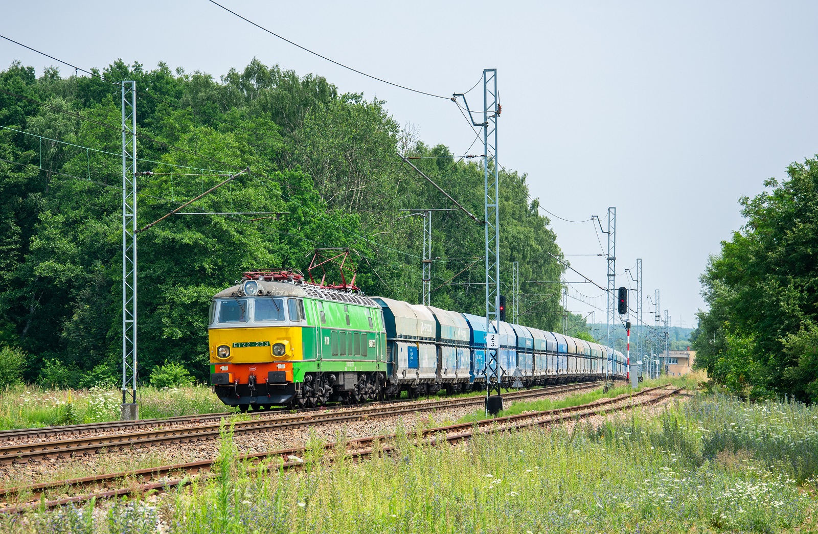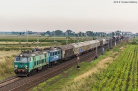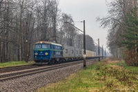 Retro Byk z pociągiem towarowym nr 464105 rel. Dąbrowa Górnicza Towarowa - Chorula Cementownia mija na biegu posterunek odgałęźny Panewnik jadąc szlakiem podg Panewnik - podg Radoszowy w stronę Rudy Kochłowic.