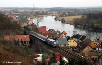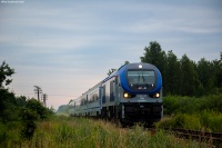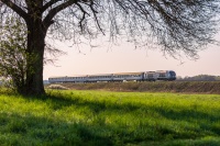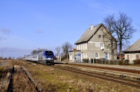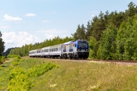 SU160-010 z pociągiem IC Mamry przejeżdża nad kanałem giżyckim jadąc w stronę Korsz.
