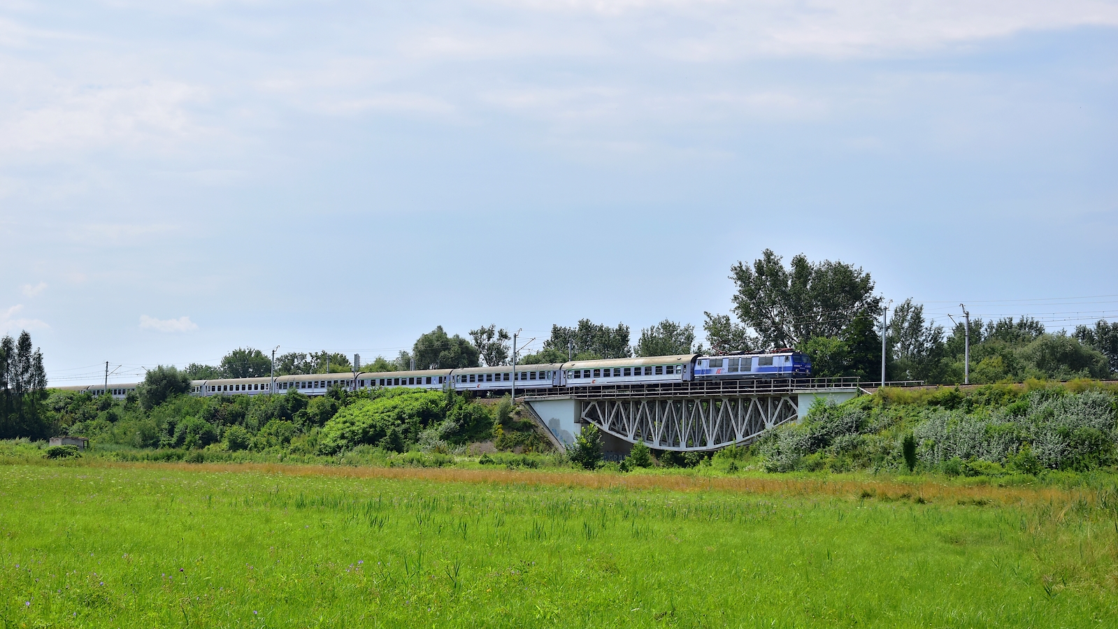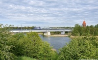 Po moście nad lokalną krakowską rzeczką Dlubnią jedzie TLK35104 Lubomirski. Podąża z Przemyśla do Gdyni Głównej.