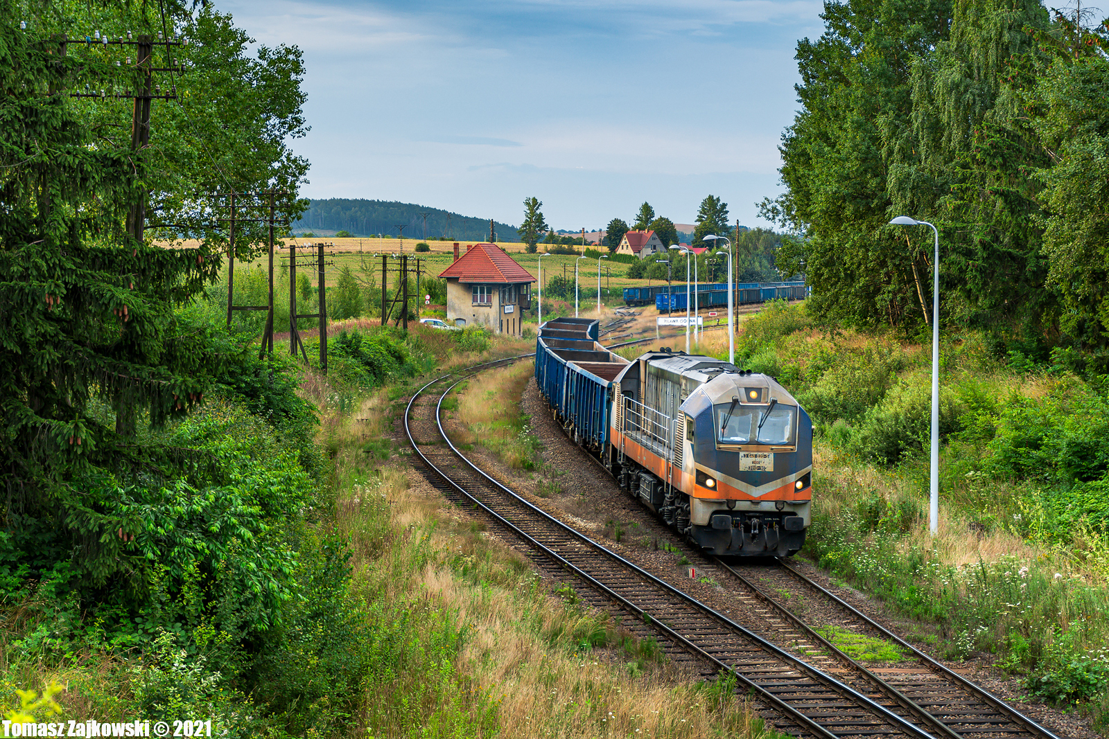 311D-10 z krótkim składem próżnych węglarek pod załadunek w pobliskiej kopalni kruszyw, wyjeżdża z uroczej stacji Piława Górna, będącej jednym z moich ulubionych miejsc na "podsudeckiej".