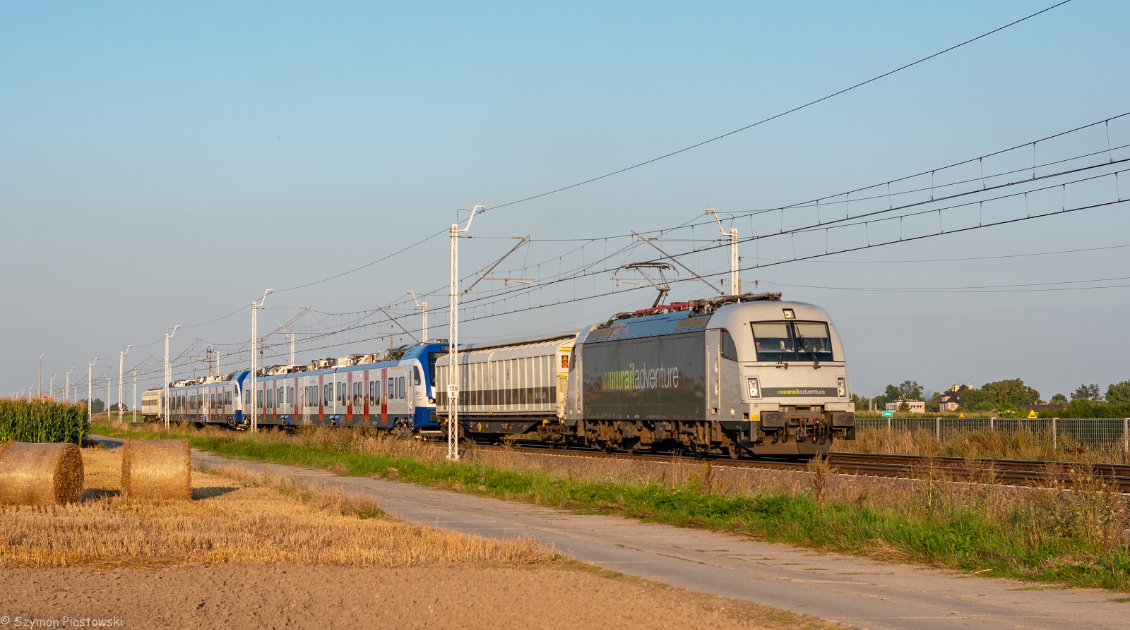 183 500-8 (ES64U4-500) z transportem dwóch Flirtów dla S-Bahn Hannover z fabryki Stadlera w Siedlcach jako pociąg TRE171000/1 relacji Siedlce - Oderbruecke jedzie szlakiem Kłodawa - Podg. Zamków.