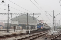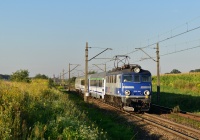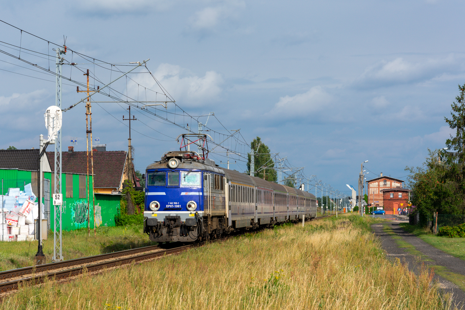 Siódemka z pociągiem IC 3809 Mehoffer rel. Przemyśl Główny - Szczecin Główny/Gorzów Wielkopolski Wschodni mija dawną stację Krasiejów zdegradowaną do roli przystanku osobowego jadąc szlakiem Fosowskie - Ozimek w stronę Opola. W tle budynek dworca oraz przejazd na ul. Sporackiej.