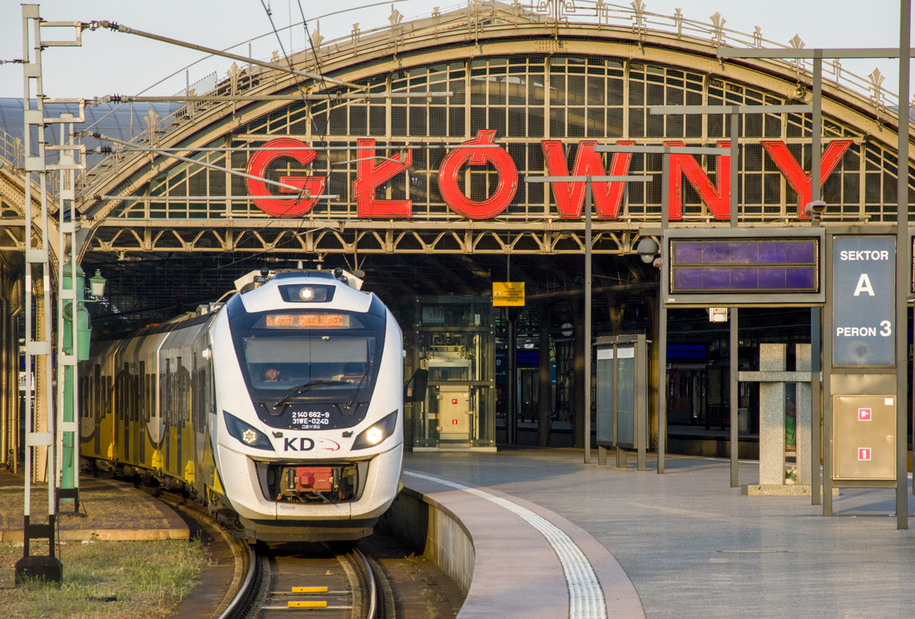 31WE-024 jako pociąg KD 69287 do Węglińca szykuje się do odjazdu ze stacji początkowej - Wrocław Główny.