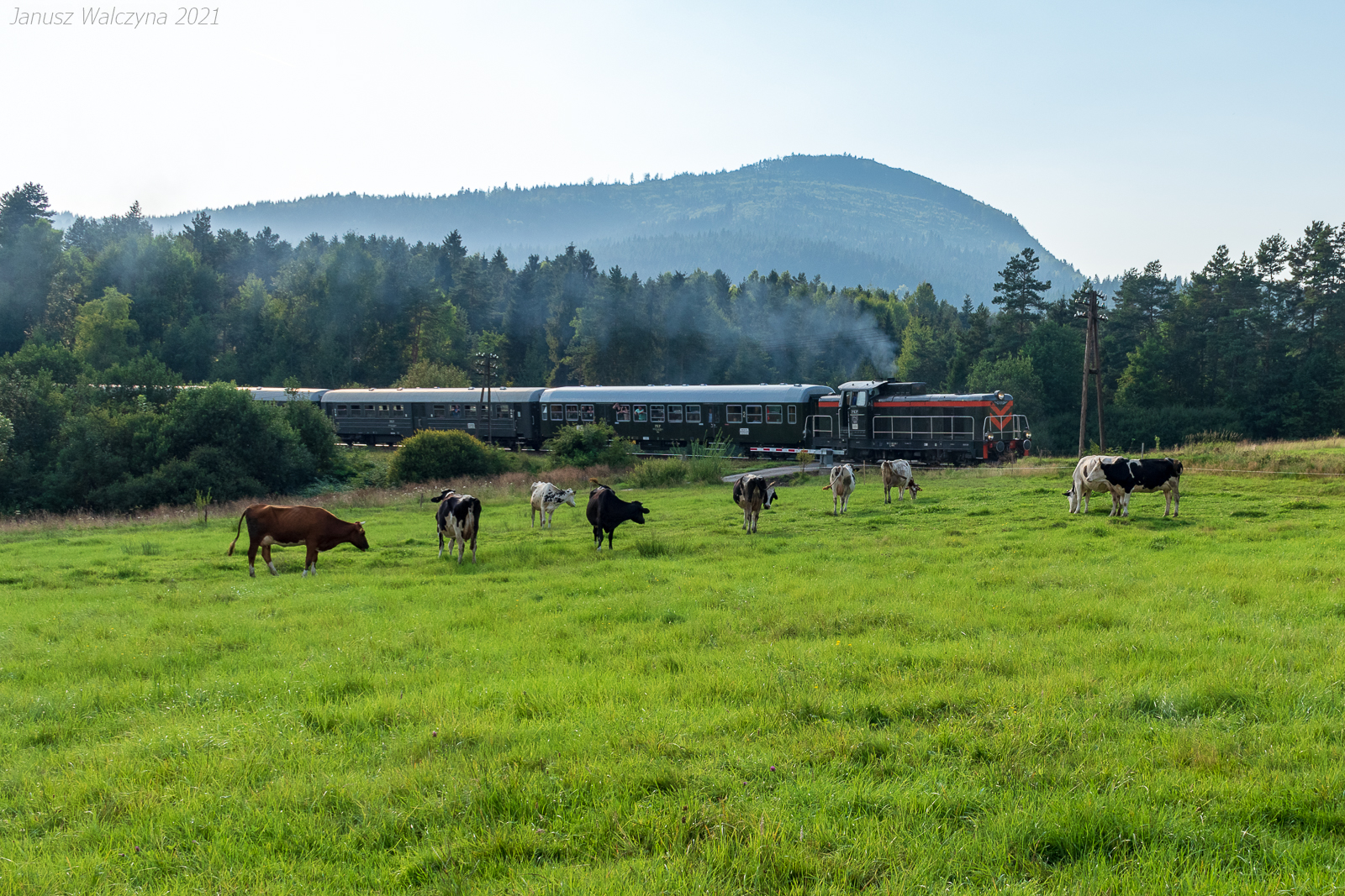 Szlakiem z Mszany Dolnej do stacji Kasina Wielka wspina się, pokonując sporą różnicę wysokości jeden z ostatnich pociągów "Transwersalny" relacji Chabówka - Nowy Sącz.