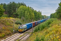 201Eo-004 ze składem węglarek wypełniony miałem węglowym jako TME 544072/3 Gdańsk Port Północny - Zdzieszowice Koksownia mija p.o Kulice Tczewskie na szlaku Pelplin - Morzeszczyn.