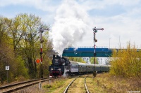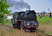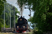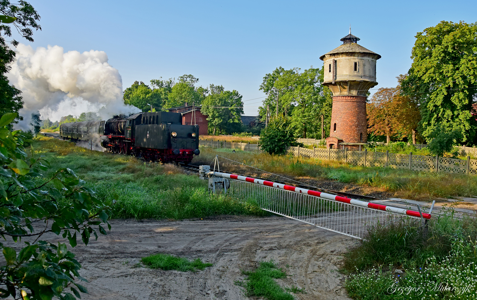 Tu jedynym, który może popsuć ujęcie jest czas, a ten zdawać by się mogło trzyma się stąd daleko. Jedynym, co wskazuje na to, że jednak upływa i tu, są wyłączone z ruchu tory dodatkowe, coraz trudniej dające się zobaczyć wśród porastających je traw. Osobiście nazywam taki kadr mianem czystego. Nie ma na nim nic, co swoją obecnością odstawałoby od parowozu swym kontekstem. Czuć tu powiew historii. Pierwszą z tego jest ta wieża wodna i rogatka z "firanką" - coś, czego już prawie nie daje się zobaczyć. Ciekawym jest też czerwony budynek za parowozem. przebija się z jego elewacji element kolejowej prehistorii. Otóż na ścianie widocznym jest napis Blotnik, czyli nazwa tej stacji, funkcjonująca od jej powstania do roku 1919.