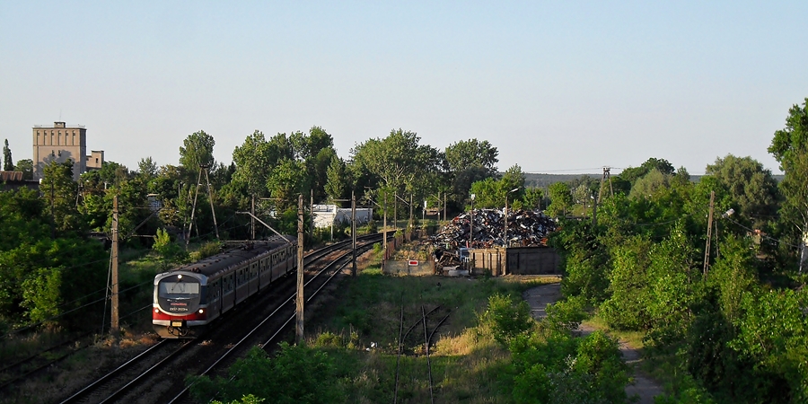 02/06/2011/ SIERADZ - IR z Warszawy Wschodniej do Wrocławia Głównego na tle przy kolejowej dzielnicy przemysłowej Sieradza. Po lewo jeden z budynków byłych zakładów włókienniczych " SIRA" oraz bocznica kolejowa prowadząca na jej teren. W centralnej części zdjęcia bocznica prowadząca do punktu skupu złomu oraz jej odgałęzienie do nieistniejącego dziś zakładu mocnych % - POLMOS Sieradz. W głębi zdjęcia za krzaczorami, niewidoczny w tym ujęciu przystanek osobowy Sieradz Warta.