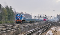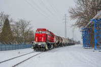 Żurawicka Walentyna przepycha eaosy z jednego toru na drugi, a w całej operacji pomaga jej bliźniacza maszyna, którą ledwie widać po drugiej stronie stacji.