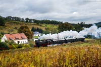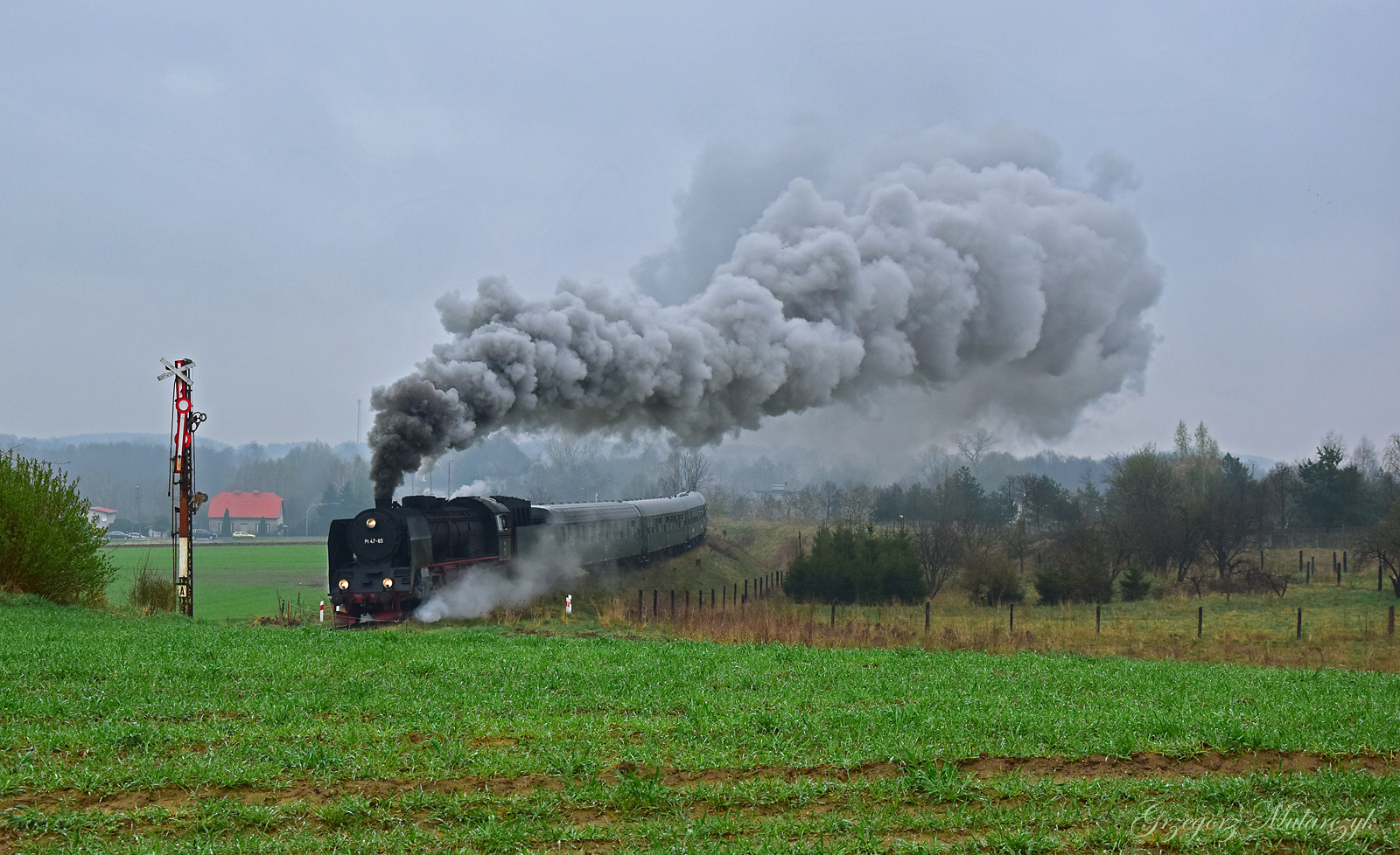 Wieki nie widziałem Turkola z parowozem, to zebrało mi się na wspomnienie takiego przejazdu. Ten pociąg jeździł w mojej pamięci już jakiś czas, aż postanowiłem sięgnąć do plików z tej gonitwy i coś z niej zaprezentować. Wybór mógł być jeden - wyjazd z Więcborka. Z całego pościgu, który prowadzący kierowca spontanicznie wydłużył aż po Gniezno Winiary, było to jednym z kilku miejsc, gdzie parowóz ukazał całą magię dawnej parowej kolei. Dla mnie to jedno z tych najlepszych ujęć z całej wyprawy. Opłacało się tu biegnąć, pomimo deszczu i błota na polu na pierwszym planie. To, co zaprezentowała w tym miejscu petucha, wynagrodziło z nawiązką wszelkie niedogodności tego wilgotnego i deszczowego dnia.
