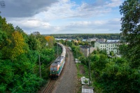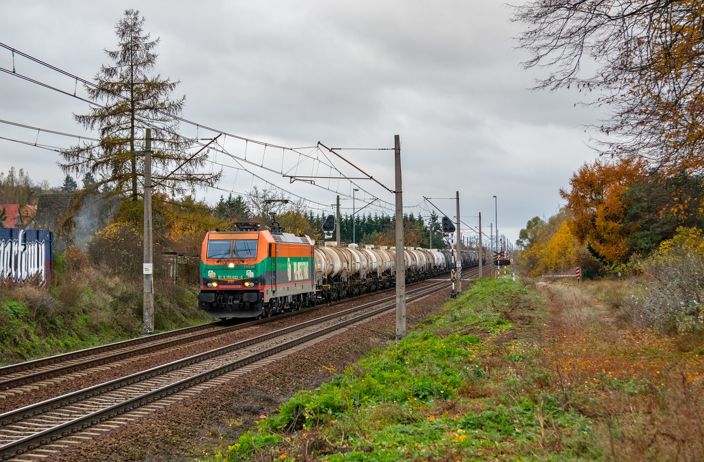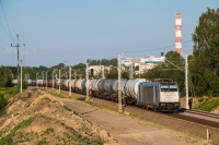 E483-201 Pol-Miedź Trans ze składem cystern z kwasem siarkowym relacji Głogów Wróblin - Police Chemia jedzie szlakiem Daleszewo - Szczecin Podjuchy. Jest to klasyczny, regularnie kursujący skład, który najczęściej prowadzą Traxxy o numerach 201 i 202.