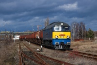 M62M-003 ze składem szutrówek DB Cargo manewruje po stacji Sosnowiec Jęzor.