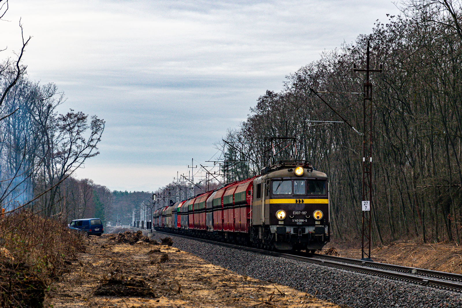 Siódemka w służbie Pol Miedź Transu z Dolnośląskich Linii Autobusowych z pociągiem towarowym nr 664011 rel. Lubin KGHM - Wróblin Głogowski mija granicę admistracyjną Goli z Koźlicami jadąc w ponure przedpołudnie szlakiem Lubin - Koźlice w stronę Rudnej Gwizdanów.Dodano: 30.11.2021 12:48