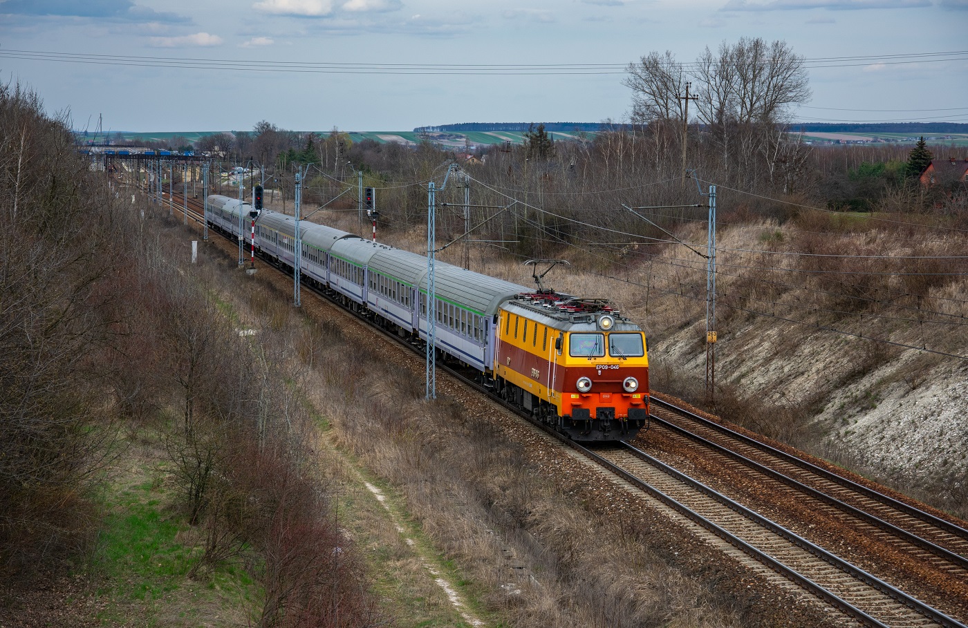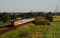 Retro Epoka z pociągiem TLK 53105 Lubomirski rel. Gdynia Główna - Przemyśl Główny minęła przed chwilą na biegu stację w Kozłowie jadąc szlakiem Kozłów - Tunel w stronę Miechowa.