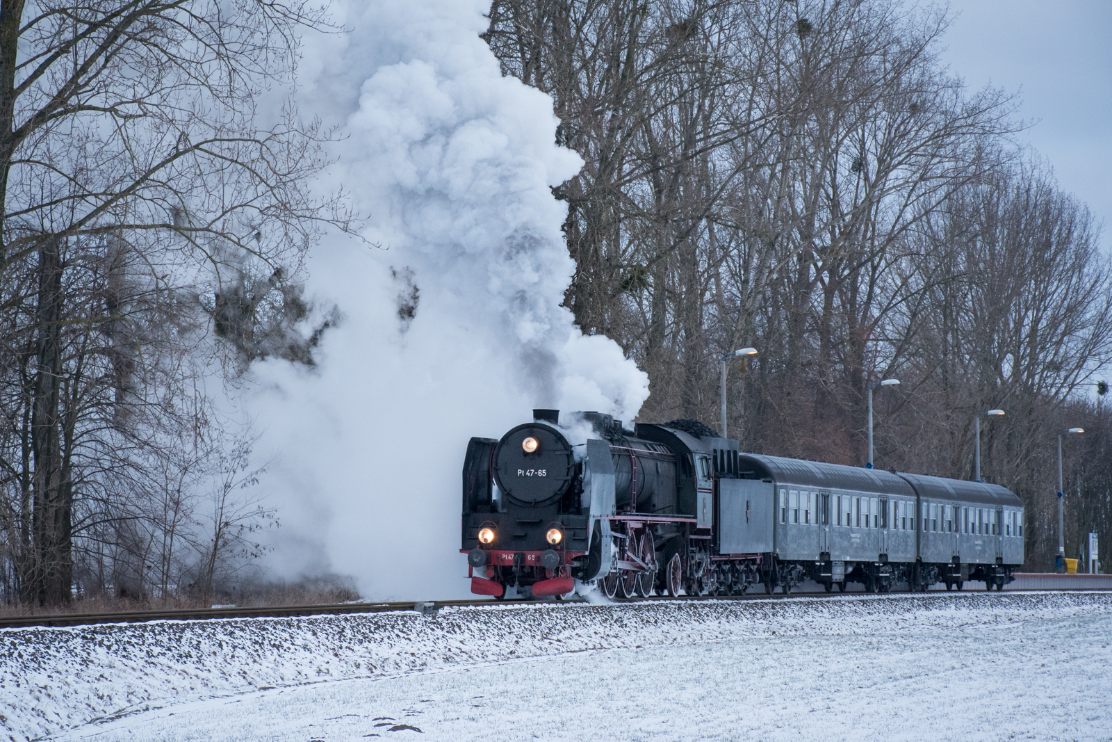Jako, że dodałem zdjęcie z okazji ostatniego kursu parowozu z pociągiem planowym w 2021 roku, to wypadałoby dodać i na powitanie w 2022. Pt47-65 startuje z przystanku Ptaszkowo w zimowy poranek ciągnąc pociąg Wolsztyn - Poznań.