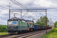 Skoda 182-120 ze składem węglarek wjeżdża o poranku na stację Tłuszcz. Po dłuższym postoju pojedzie dalej w kierunku Białegostoku.