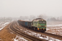 Tytułowy gagar ze stonką i składem węglarek w zimowej aurze opuszcza Rzepin w kierunku Czerwieńska.