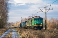 Po prawej widoczne są tory nieużywanych od początku 2018 roku bocznic do rejonu głównego i szybu IV KWK Śląsk.