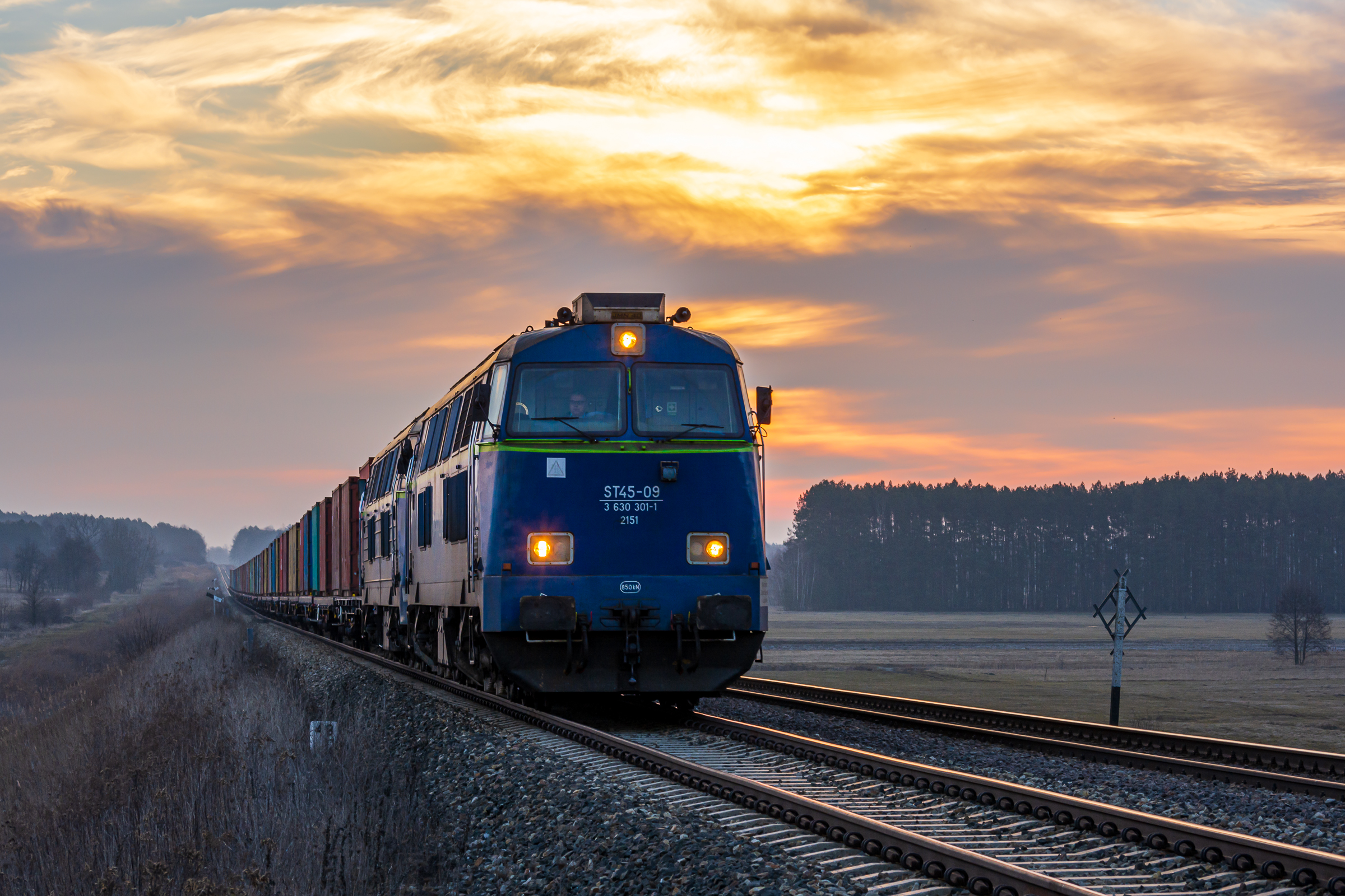 A na zdjęciu: dwie ST45 prowadzą kontenery do Rozwadowa Towarowego w scenerii rozpoczynającego się tłustego czwartku. W plecaku pudełko pełne domowych pączków, którymi objadałem się przez cały dzień w przerwach między kolejnymi pociągami.