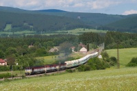 Szerokim torem podążają w kierunku Ukrainy próżne wagony na rudę żelaza. Popych stanowi widoczna na zdjęciu 125 825, a na czele składu znajduje się jako pierwsza 125 812 i 125 818 (w starym malowaniu).