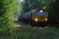 Class 66 220, pracujący dla przewoźnika Alza Cargo, a będący własnością DB Cargo Polska wyciąga skład ładownych węglarek z kopalni kruszywa w Piławie Górnej w kierunku miejscowej stacji, gdzie po chwilowym postoju i krzyżowaniu z szynobusem KD ruszy dalej w stronę Kamieńca Ząbkowickiego.