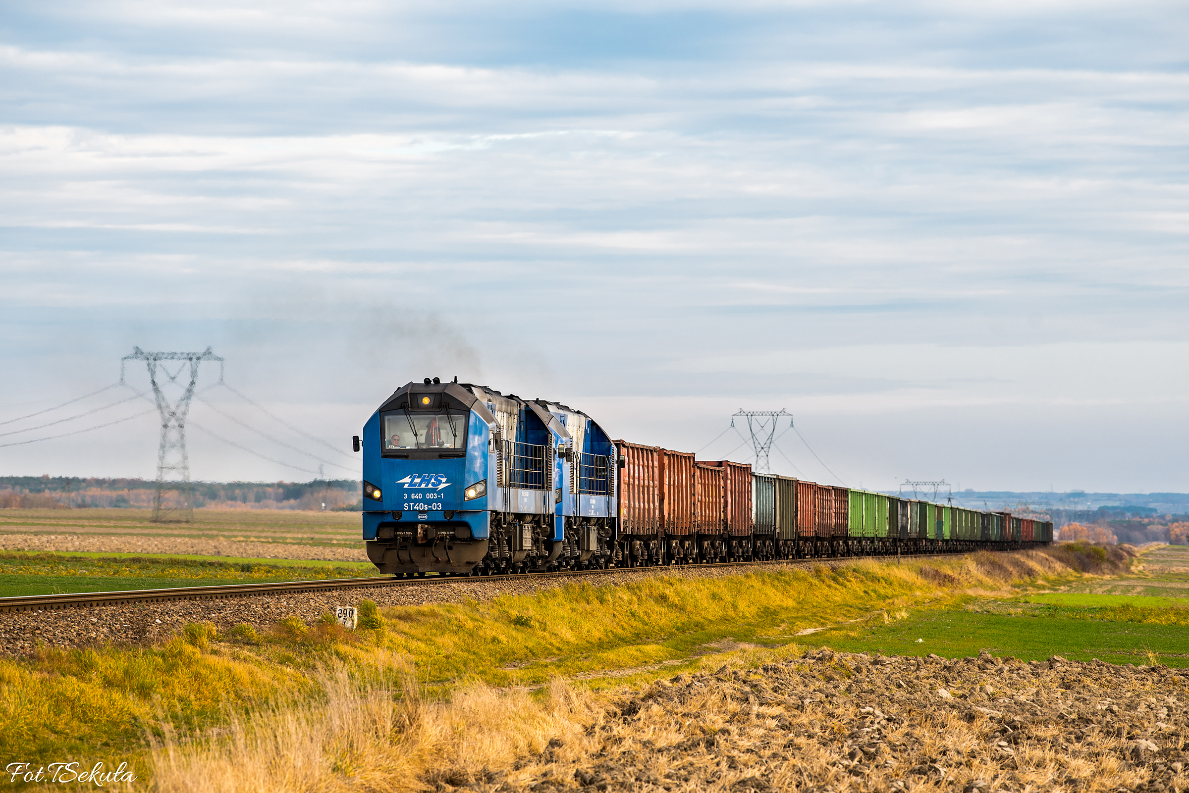 Duet "batmanów" ciągnie ciężki pociąg z rudą w kierunku Zagłębia. Skład mozolnie pokonuje wzniesienie, wyciągając się przy tym z doliny Nidy.
