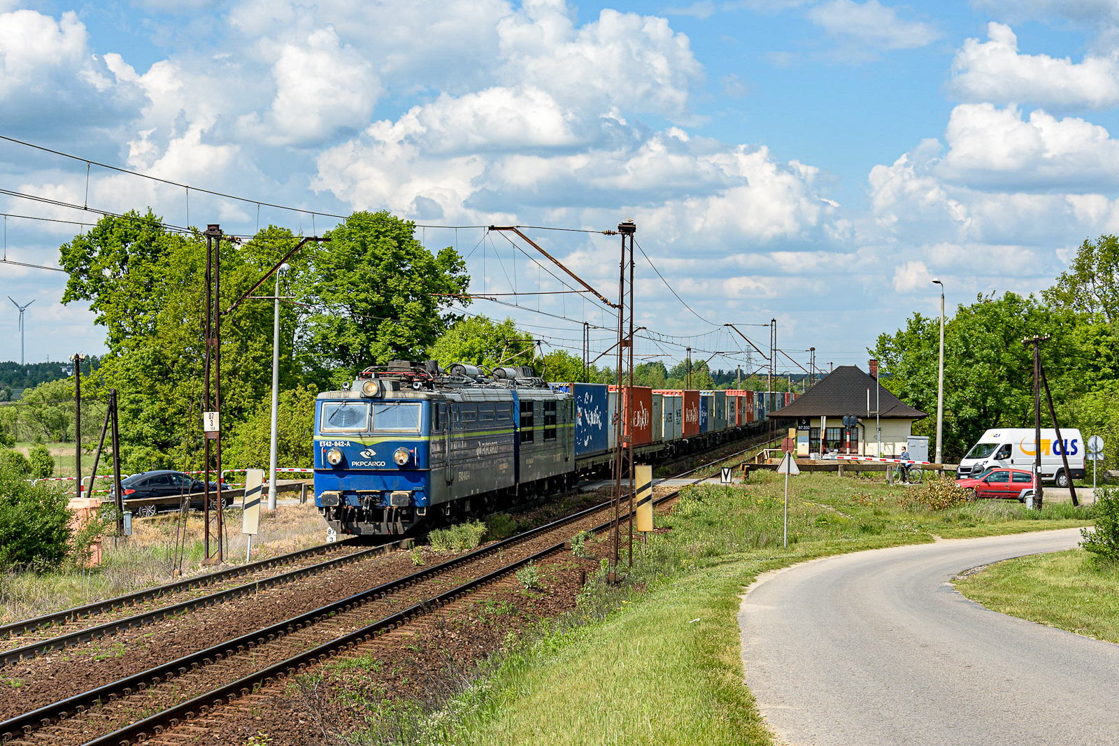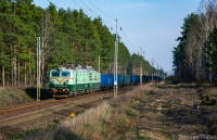 Rusek z pociągiem towarowym nr 542022 rel. Gdynia Port GPW - Gliwice Port mija przejazd na ul. Zakrzewskiej w Kłobucku jadąc szlakiem Kłobuck - Wręczyca w stronę Herbów Nowych.