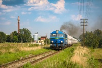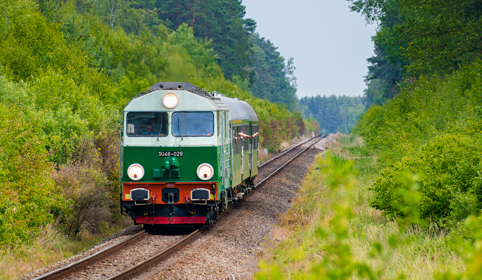 SU46-029 prowadzi swój ostatni pociąg Turkolu tego dnia. Na zdjęciu wjeżdża do Żagania z pociągiem "Grzmot" z Małomic.