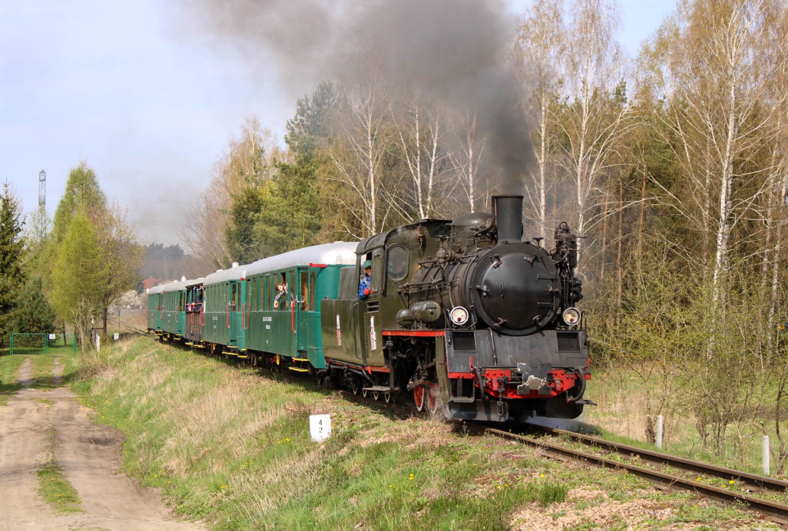 Px48-1752 z pierwszym pociÄ…giem turystycznym w tym roku mija wieÅ› Mrozy Wielkie.