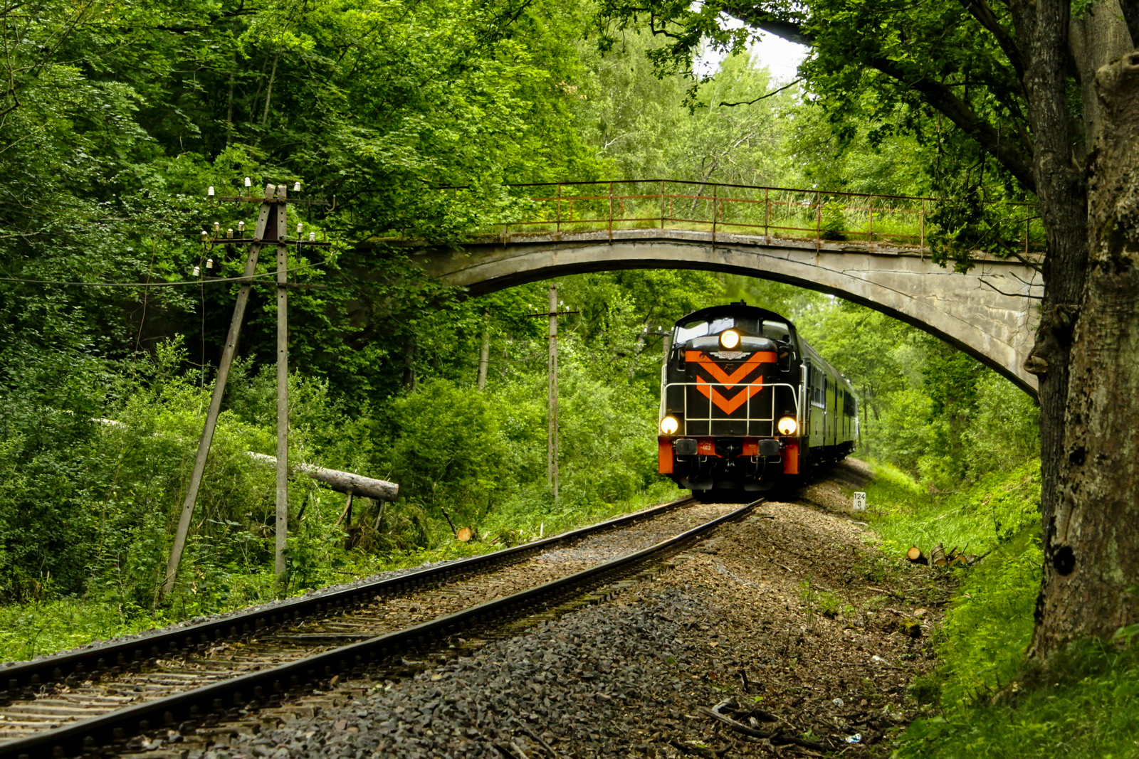 SM42-462 z poc. TLK Delfin przejeżdża pod wiaduktem niedaleko miejscowości Wrześcienko
