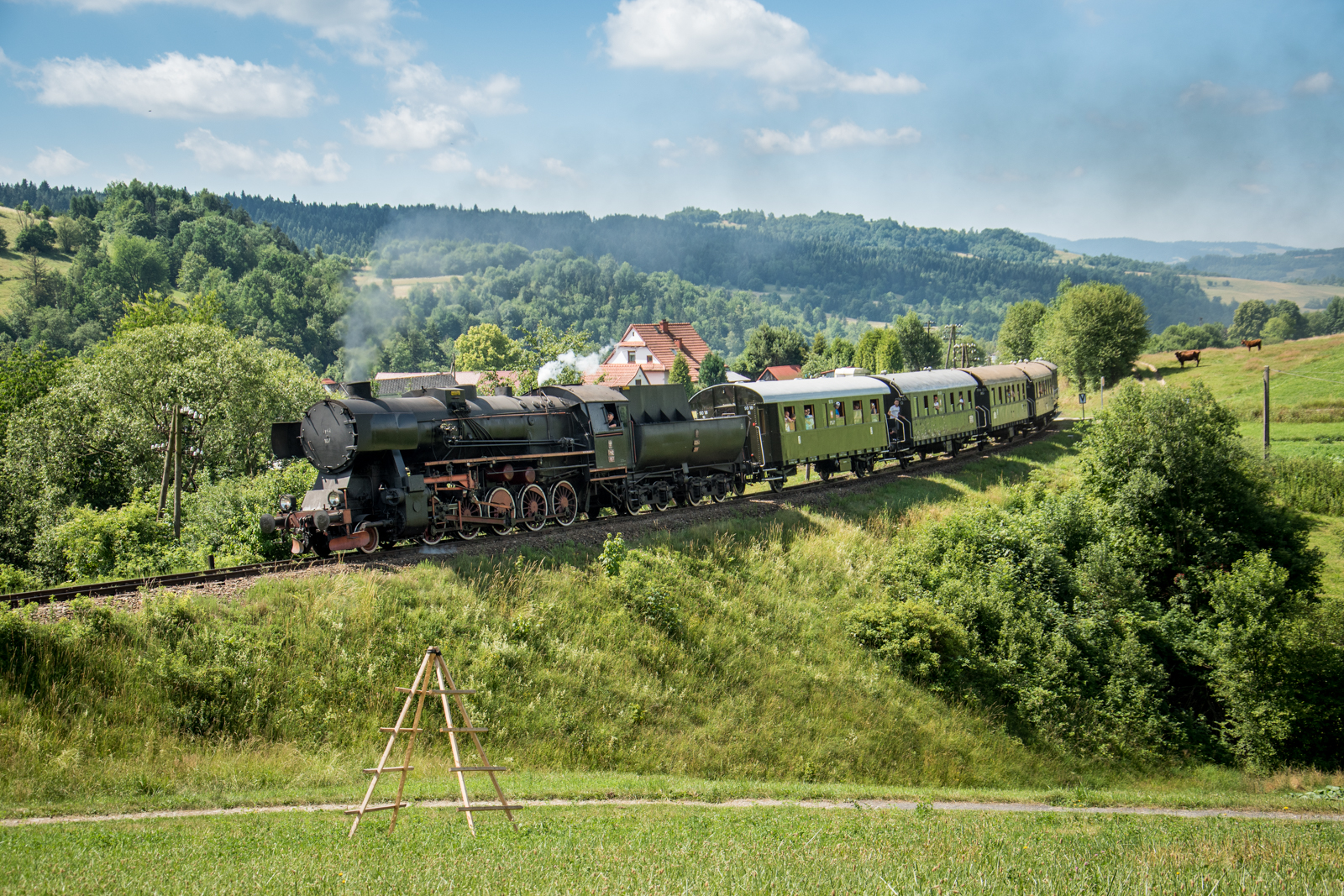 Ty42-107 z pociągiem 33201 relacji Chabówka - Kasina Wielka podczas trudnego podjazdu na 104-ce. Skład od Mszany Dolnej jest w ciągłej wspinaczce, a charakterystyczne dźwięki parowozu da się usłyszeć już kilka minut przed przejazdem pociągu. Od stacji w Mszanie do przejazdu w Kasinie na DW-964 skład podjeżdża 150 metrów, następnie zjeżdża 10 m do mostu, żeby podjechać do stacji w Kasinie 40 m. I to wszystko na odcinku około 8,5 km. Wspaniały klimat ma ta linia kolejowa.