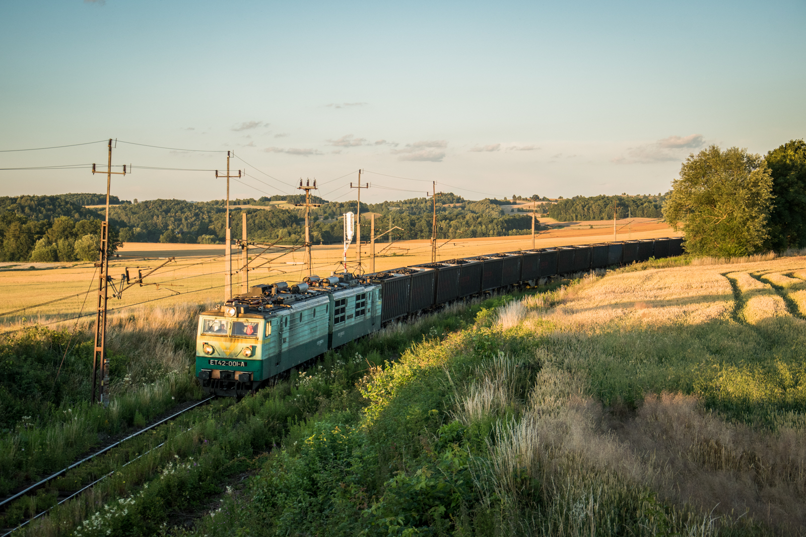 ET42-001 na czele pociągu z Wałbrzycha mija semafor wjazdowy stacji Stara Kamienica. Na tejże stacji pociąg odbędzie 20 minutowy postój celem przepuszczenia osobowego do Jeleniej Góry. Są to już ostatnie tygodnie tego "czapaja" w ruchu. Jeszcze trochę pojeździ i odstawka w krzaki. Dla lokomotyw serii ET42 nie przewidziano kolejnych napraw.
