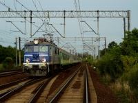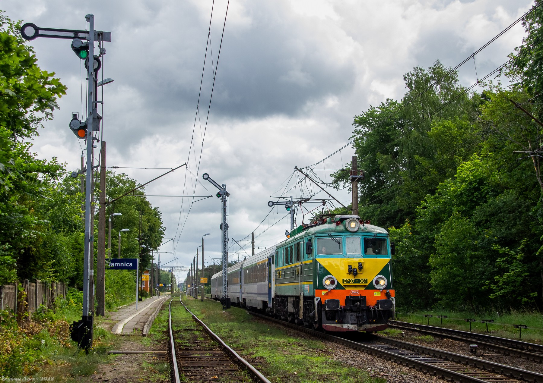 EP07-361 z pociągiem IC 58104 "Bryza" relacji Olsztyn Główny - Szczecin Główny, po krótkim postoju handlowym rusza z klimatycznej stacji Damnica.