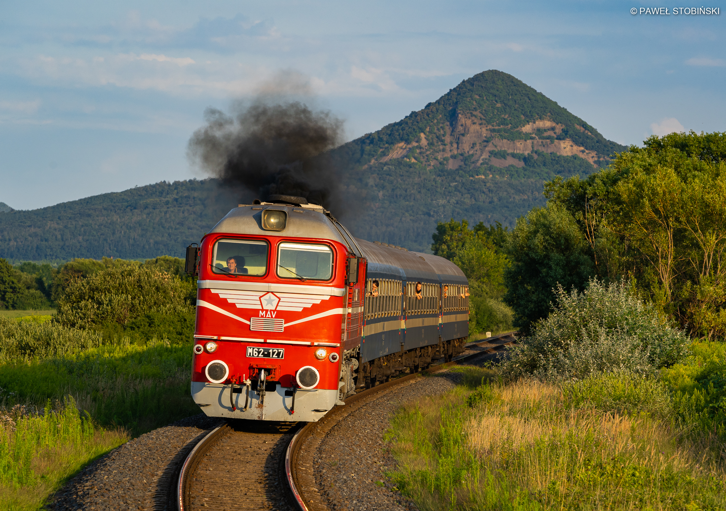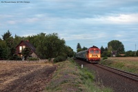 Piękny M62-127 z pociągiem osobowym rel. Balatonfüred - Tapolca zbliża się do celu swej podróży, gdzie zjedzie na zasłużony odpoczynek po całodniowym kursowaniu nad Balatonem. Tego dnia Gagar obsłużył aż 6 pociągów: pierwszy fotografowaliśmy tuż po wschodzie, ostatni (widoczny na zdjęciu) natomiast godzinę przed zachodem. Tym zdjęciem zakończyliśmy bardzo intensywną sobotę, w której najdłuższą przerwą był 3 minutowy, wymuszony postój na stacji benzynowej. Węgrzy to potrafią w imprezy ;) Pozdrowienia dla współtowarzyszy wyprawy jak i spotkanych na miejscu Polaków!