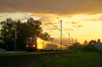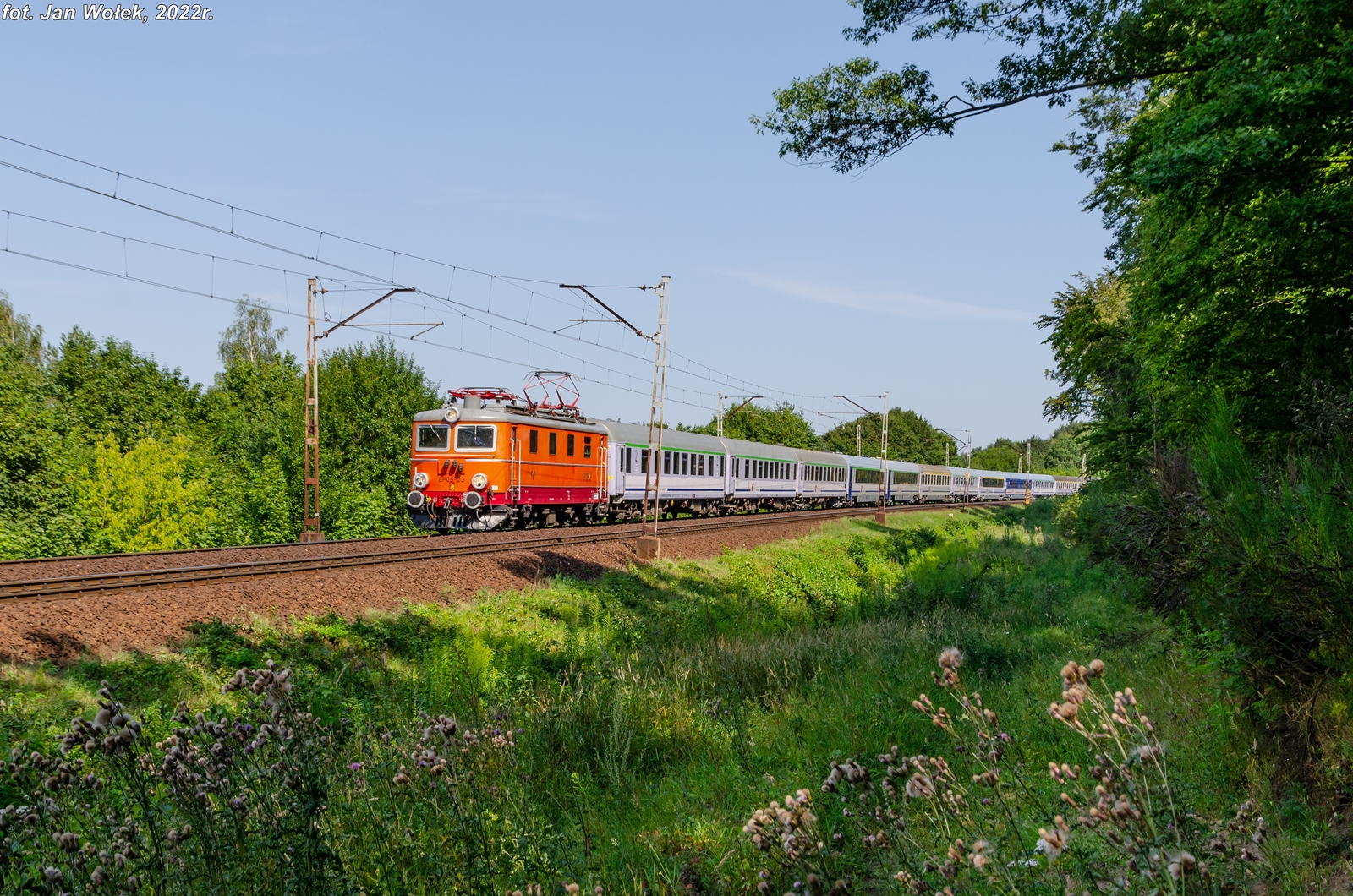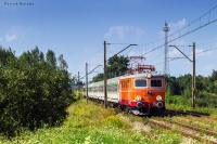 EP05-023 z pociągiem 186000/1 rel. Warszawa Grochów - Szczecinek pokonuje szlak Reda - Wejherowo, zbliżając się do p. o. Reda Pieleszewo. Pociągiem podróżowali uczestnicy tegorocznego festiwalu Pol'and'Rock odbywającego się w Czaplinku.