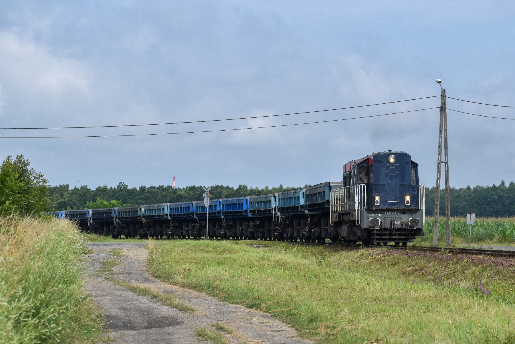 T448P-133 ciągnie próżny skład radwanów z Centralnego Zwałowiska Odpadów Górniczych które znajduje się w Knurowie do KWK Budryk w Ornontowicach skąd po załadunku skały płonnej pojedzie z powrotem na w/w zwałowisko.