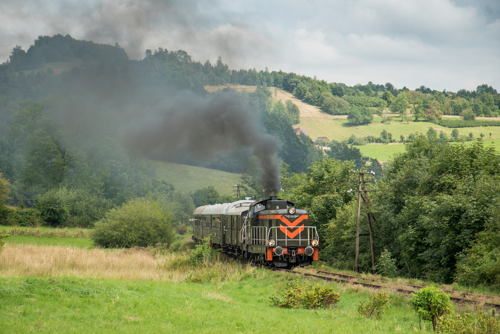 SM42-1031 z przepustnicą na "full" prowadząca przedostatni pociąg "Transwersalny" w 2022 roku. Skład zbliża się do przejazdu w Porąbce. Kto wie, czy nie był to ostatni sezon tego pociągu na 104-ce. Remont zapasem. Co do stonki to kopciła bardziej niż parowóz :D