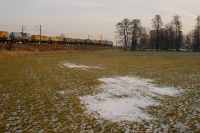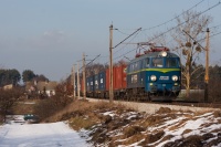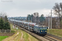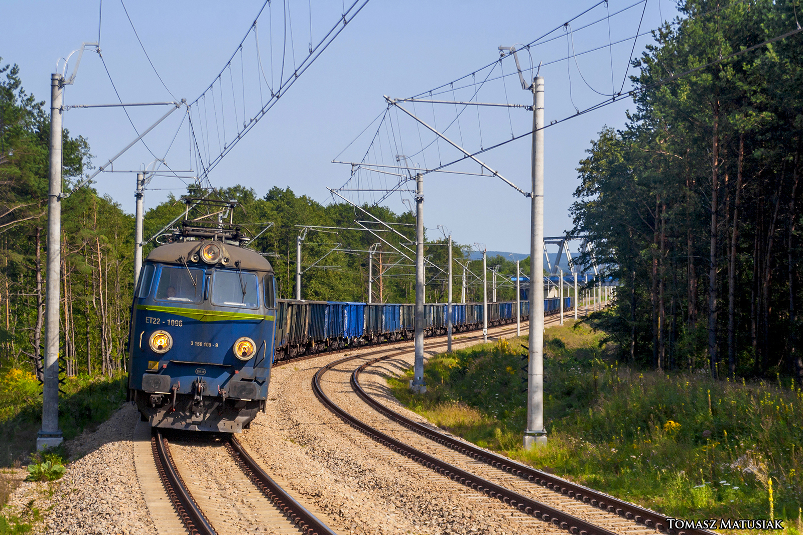 ET22-1096 ciągnie skład węglarek zmodernizowanym szlakiem Bukowno - Sławków, skład za chwilę minie przystanek osobowy Bukowno Przymiarki