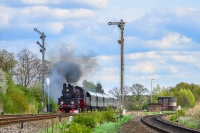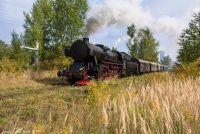 czyli Ol49-59 z pociągiem specjalnym Kilof w Starczowie mija na biegu skodę STK i kieruje się dalej w stronę Kamieńca Ząbkowickiego (03.09.2011).
