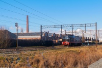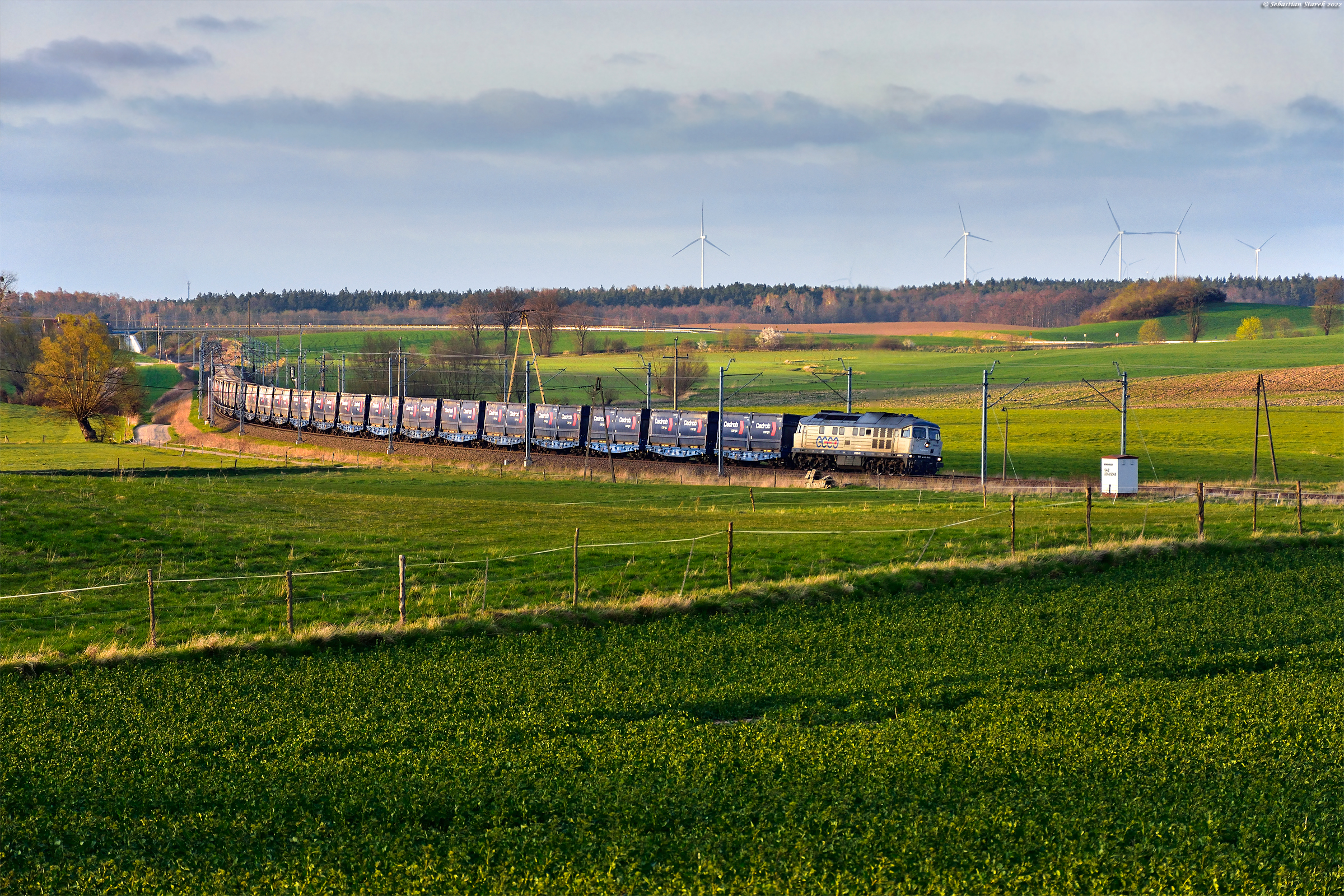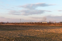 BR232-446 ze składem pociągu towarowego relacji Gdynia Port - Rypin mija okolice wsi Sadłuki, jadąc powolutku szlakiem z Mleczewa w kierunku Prabut.