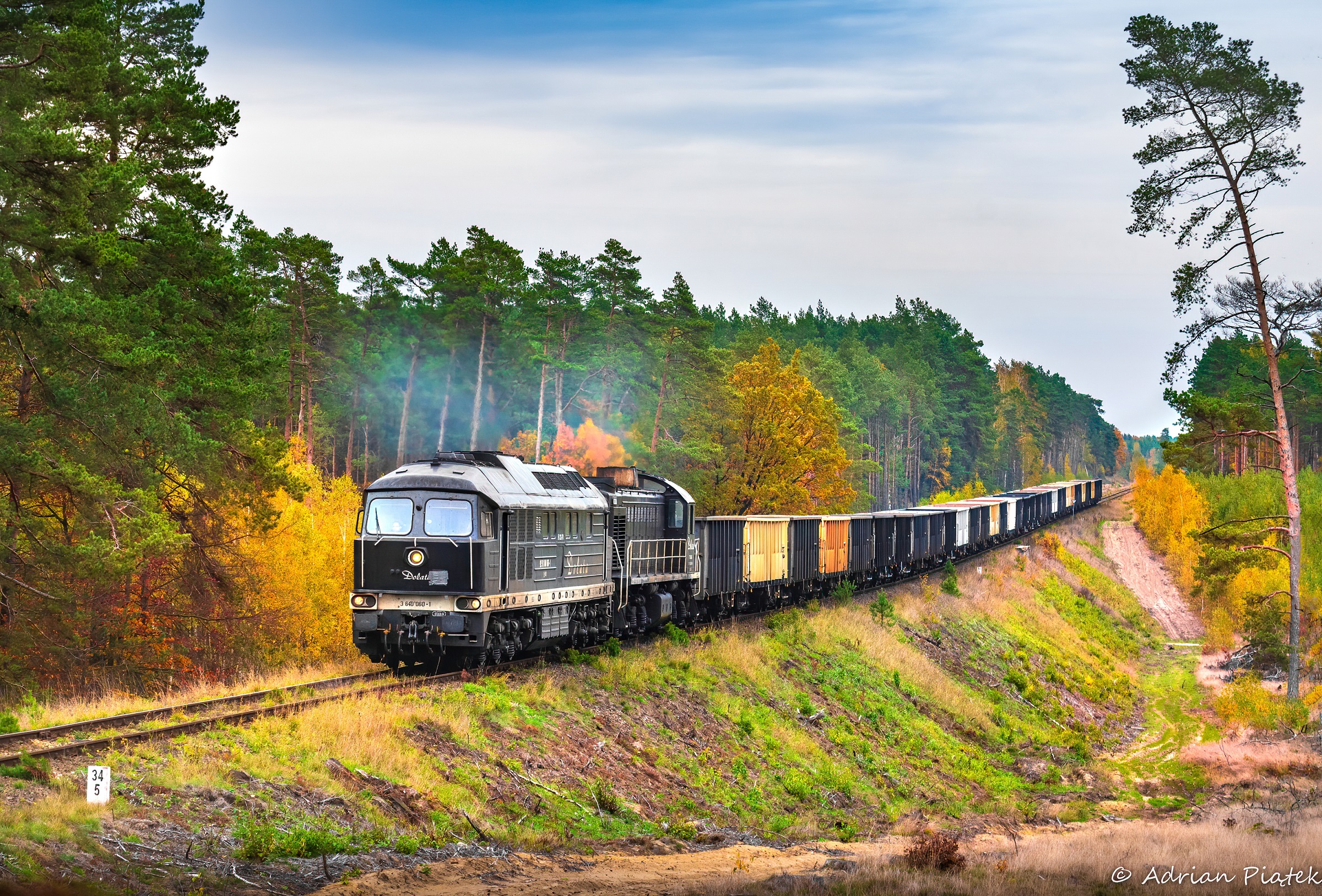 Radziecki duet, czyli BR232-781+TEM2-065 z ciężkim pociągiem do stacji Kalisz Pomorski, podjeżdża pod górkę chwilę za przystankiem osobowym Strączno. Dźwięk "wycia" Ludmiły niósł się po lasach jeszcze przez kolejne 10 minut, poezja dla uszu :)